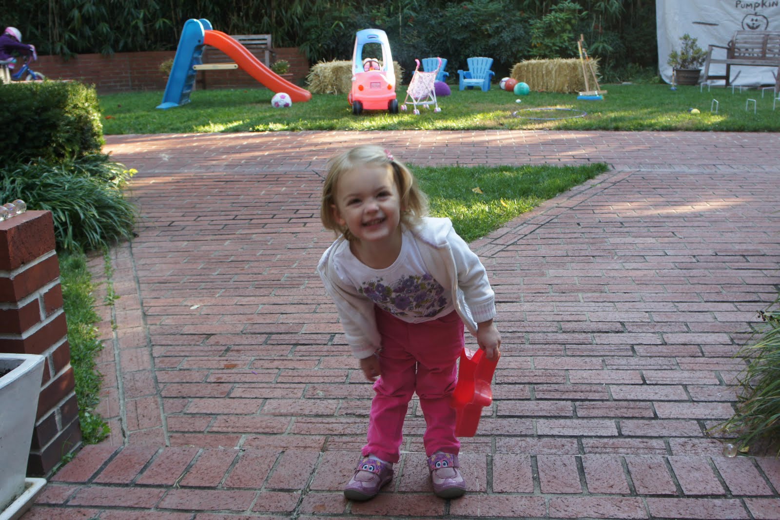 Aven thought it was pretty funny that Daddy misspelling NovemberFest on his big tarp. (Look closely at the previous picture.)